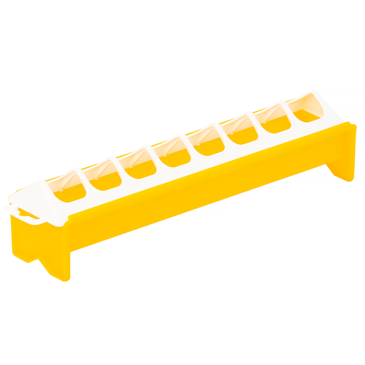 Karmidło korytkowe dla kurcząt o długości 30 cm. Doskonale sprawdza się dla młodych ptaków, a także ptactwa niewielkich gabarytów. Korytko wyposażone zostało w kratkę ochronną, dzięki czemu ptaki nie mają możliwości przesiadywania wewnątrz karmidła. Kratka zabezpiecza również przed rozsypywaniem paszy i wydziela 7 odrębnych stanowisk do jej pobierania. Hodowca celem uzupełnienia paszy może podziałkę wysunąć.Całość wykonana została z najwyższej jakości materiałów - tworzywa sztucznego, które jest wytrzymałe i odporne na uszkodzenia. Karmidło łatwo się czyści i dezynfekuje.