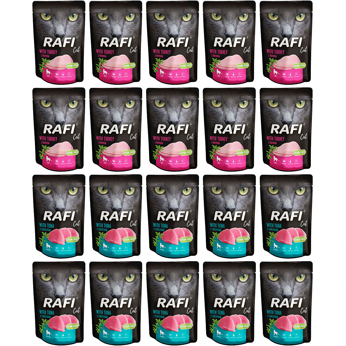 Mokra karma dla kota Rafi mix indyk, tuńczyk 20 x 100 g