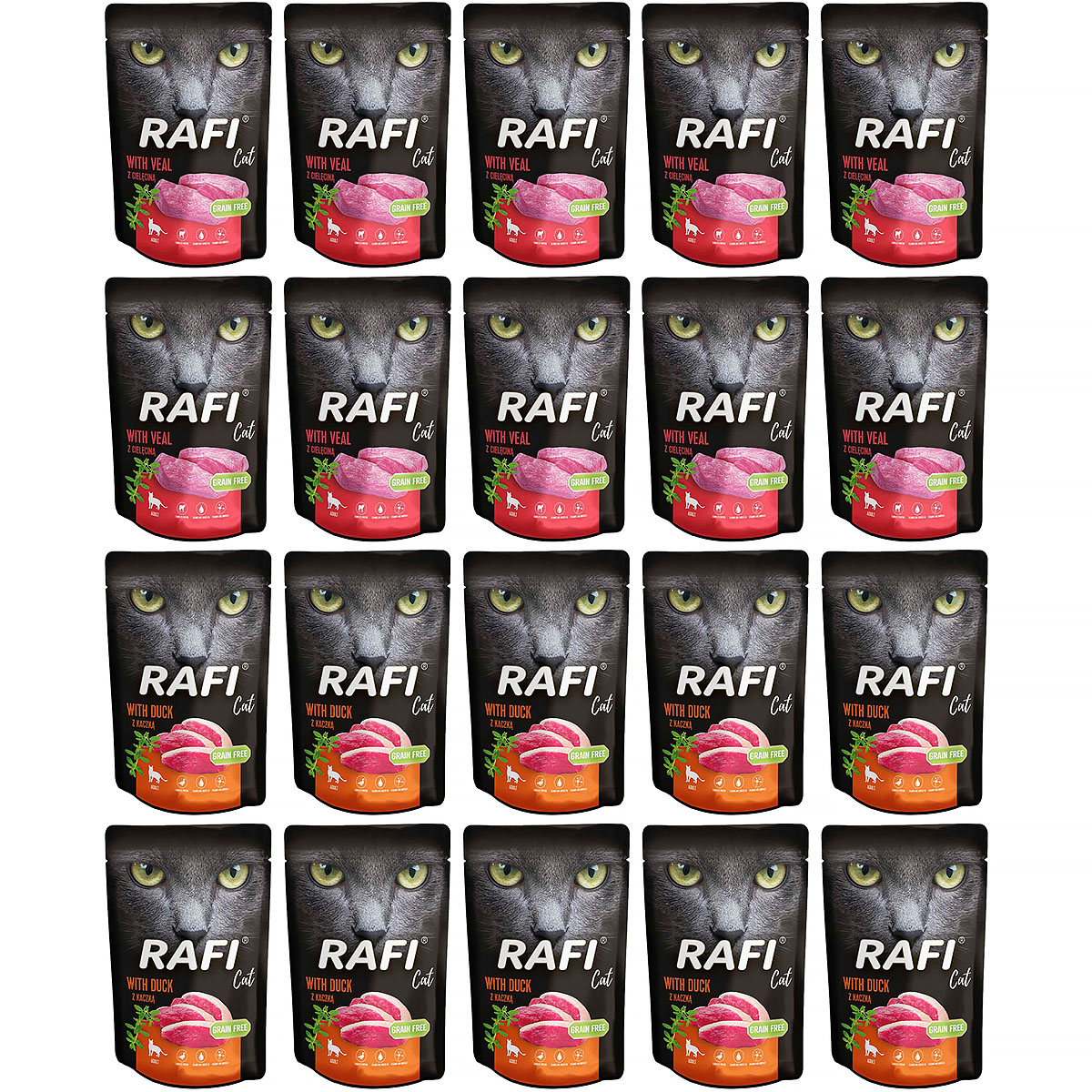 Mokra karma dla kota Rafi mix kaczka, cielęciną 20 x 100 g