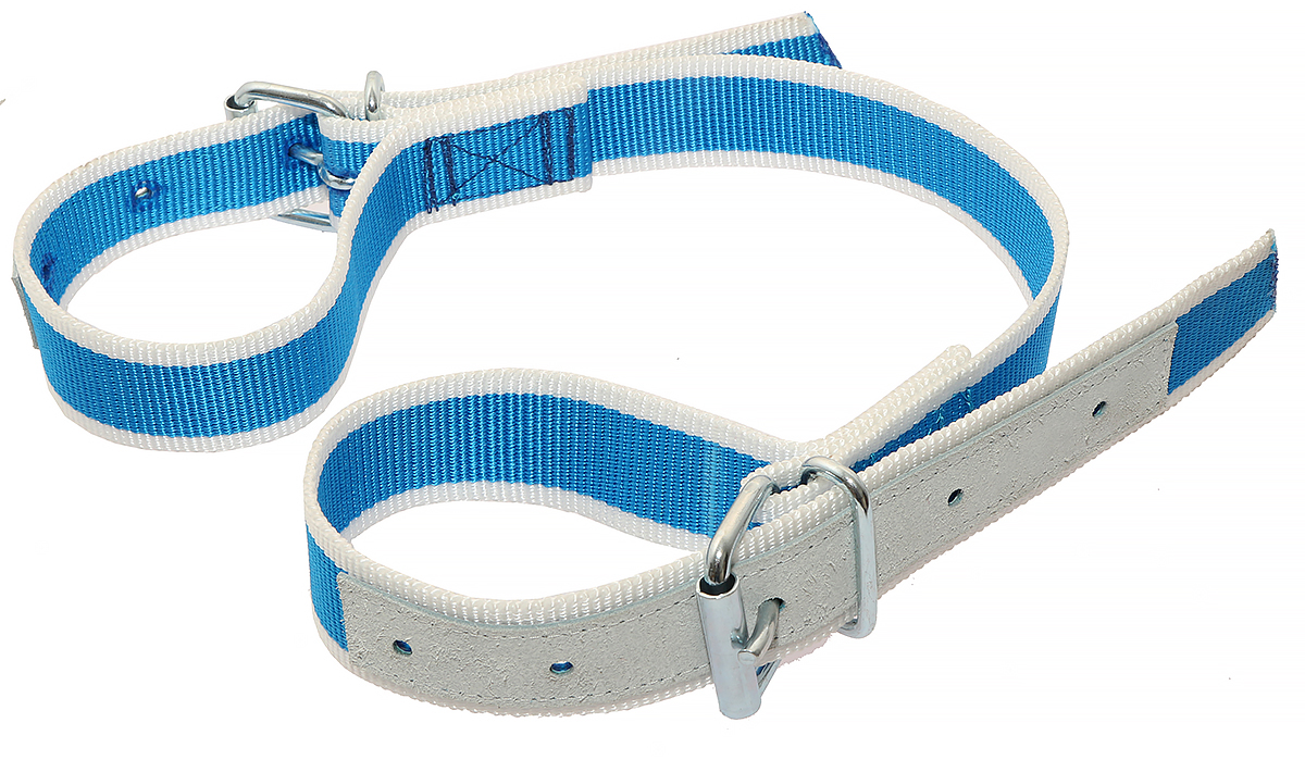 Pęto do poskramiania bydła przeznaczone jest do krępowania nóg, gdy zachodzi potrzeba unieruchomienia zwierzęcia. Biało-niebieski poskrom wykonany został prawie w całości z mocnego włókna nylonowego. Dla mocowaniu wykorzystano również elementy ze skóry oraz metalu tj. klamry i pasy mocujące. Całość tworzy silną uprząż, która bezboleśnie ograniczy zakres ruchu krowom lub bykom.