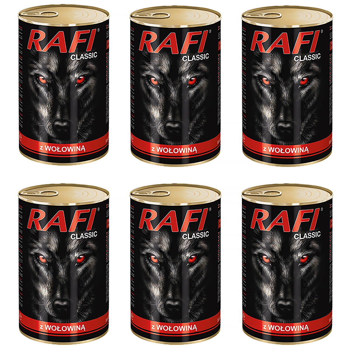 RAFI CLASSIC karma mokra dla psów z wołowiną kpl w puszkach 6 x 1240 g