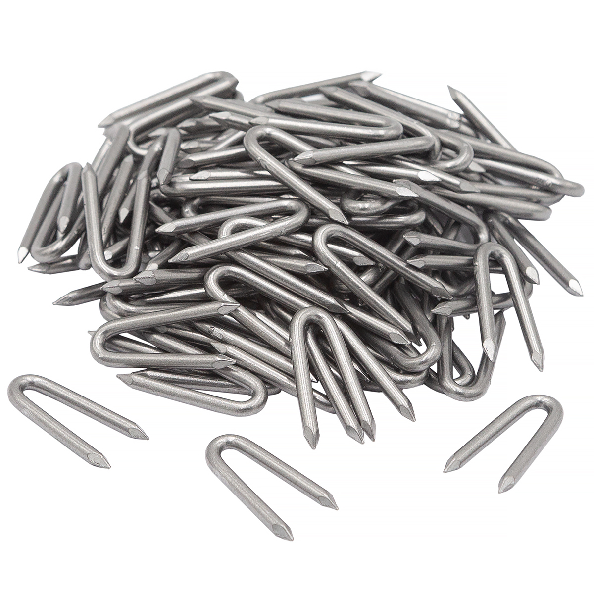 Mocne skoble mocujące do montażu siatki leśnej na słupkach drewnianych. Skoble pozwalają na łatwy, szybki oraz co najważniejsze trwałe przymocowanie siatki leśnej do słupka. Oferowane skoble montażowe posiadają wygięty kształt przypominający literę "U" z zaostrzonymi trzpieniami z obu stron. Towar dostępny w opakowaniu liczącym 100 sztuk.