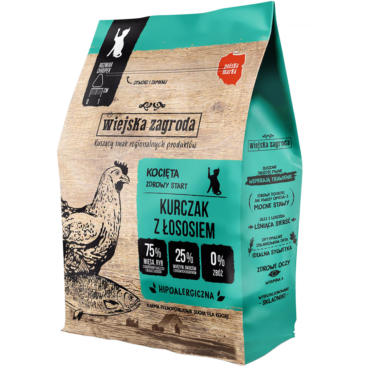 Sucha karma dla kota Wiejska Zagroda kurczak z łososiem 400 g kociak