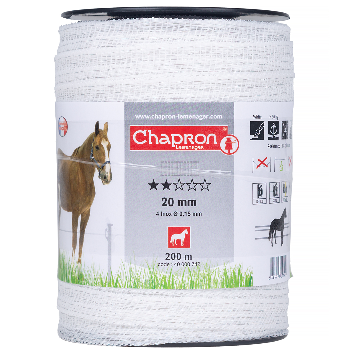 Taśma biała do pastucha dla koni 20 mm rolka 200 m ECON