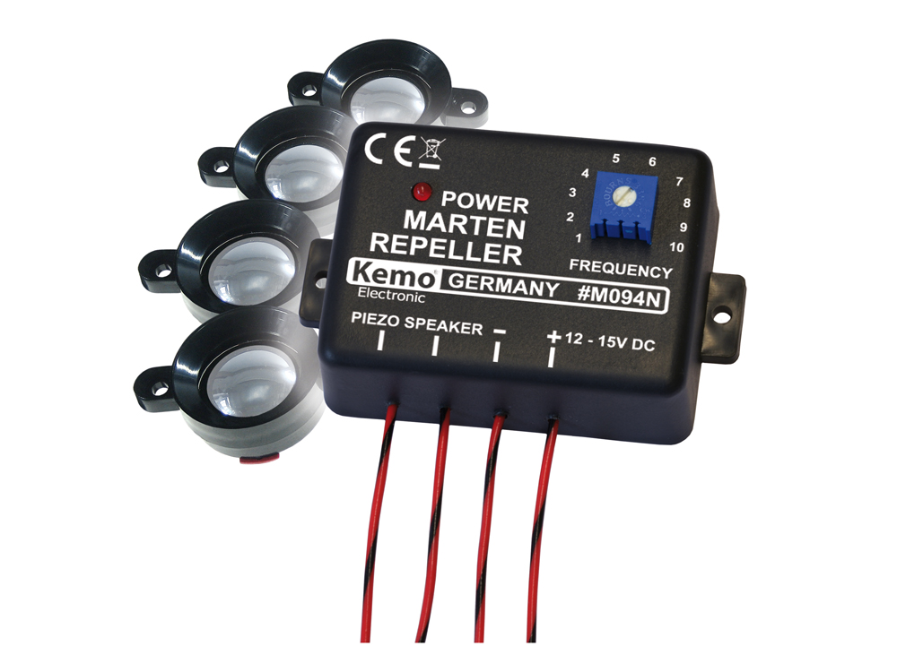 Po ustawieniu potencjometru na odpowiednim poziomie odstraszacz generuje fale ultradźwiękowe nieprzyjemne dla szkodnika. Zasięg odstraszacza liczony jest na 200 m². Zaletą stosowania odstraszaczy ultradźwiękowych na kunę jest to, że można za ich pomocą skutecznie pozbyć się szkodnika bez wyrządzania mu krzywdy. Urządzenie zasilane może być z akumulatora lub z sieci po podłączeniu transformatora 12 V (brak w zestawie). Odstraszacz należy połączyć z głośnikami za pomocą przewodu dwużyłowego.