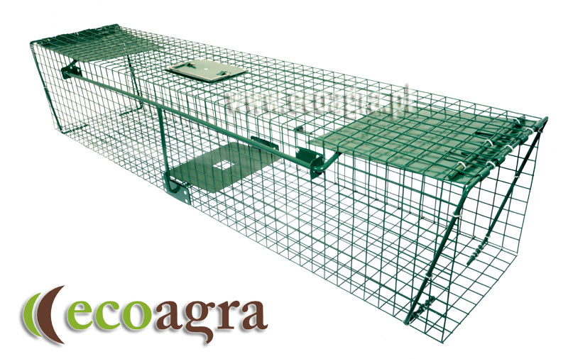 , wydrę lub kunę. Jest to jedna z najczęściej wykorzystywanych żywołapek gdy w okolicy zacznie grasować lis lub kuna pojawi się w wolierze. Pozwala szybko wyeliminować wydry z jezior lub stawów rybnych. Pułapka ma długość 130cm dlatego idealnie nadaje się do łapania lisów, kun czy szczurów, które nie będą miały żadnych szans na ucieczkę z sideł.Pułapka na wydry posiada bardzo czuły automatyczny system zapadni, które natychmiastowo zamykają się po poruszeniu płytki z przynętą. Umieszczona jest ona wewnątrz klatki do łapania kun czy lisów. Zapadnie połączone są z miejscem na przynętę i opadają zawsze jednocześnie nie dając drapieżnikowi jakiekolwiek szansy na ucieczkę. Klapy zamykają się od środka dlatego nawet lis czy kuna nie będą w stanie samodzielnie otworzyć przejść. Zastosowanie tego rodzaju łapacza na lisy pozwala szbko pozbyć się każdego szkodnika jak kuny, łasicy czy wydry.
